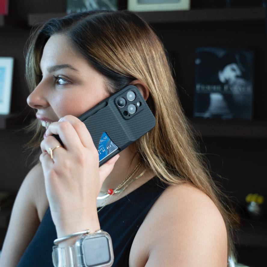 Sporting a military-grade carbon fiber exterior and impact-resistant rubber interior, the Carbon Series protects your phone even in the harshest conditions.